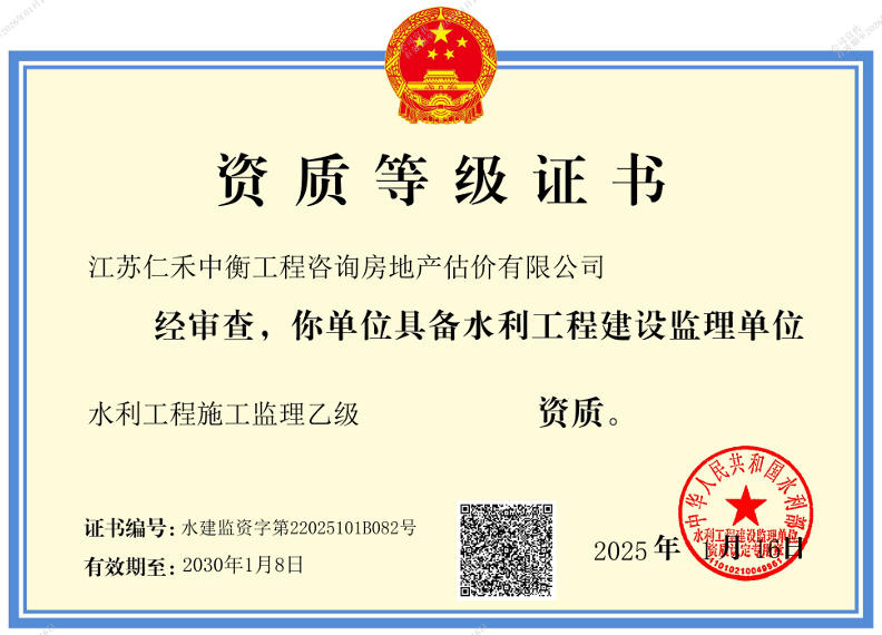 - 水利工程施工監理乙級證書